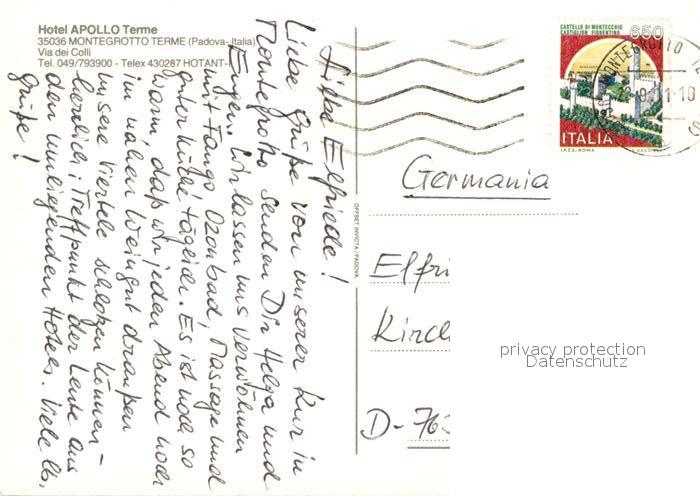 old postcard Montegrotto Terme Hotel Apollo postalisch gelaufen Erhaltung siehe scans [PaolaD17]
