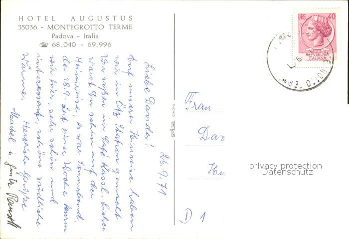 old postcard Montegrotto Terme Hotel Augustus postalisch gelaufen Erhaltung siehe scans
