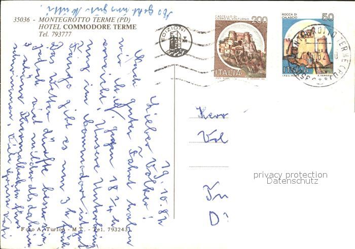 old postcard Montegrotto Terme Hotel Commodore Terme postalisch gelaufen Erhaltung siehe scans
