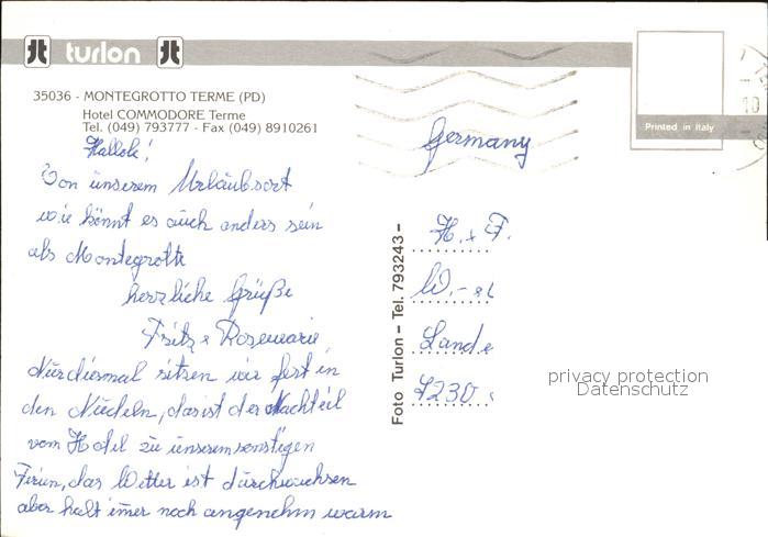 old postcard Montegrotto Terme Hotel Commodore Terme postalisch gelaufen Erhaltung siehe scans