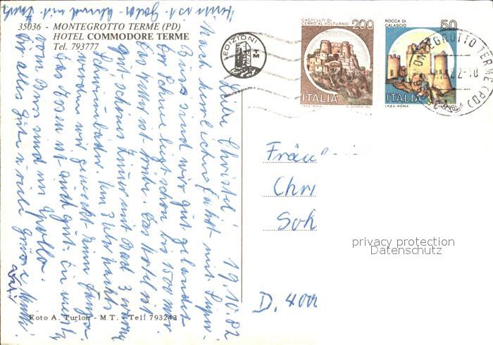 old postcard Montegrotto Terme Hotel Commodore Terme Schwimmbad Liegewiese postalisch gelaufen Erhaltung siehe scans
