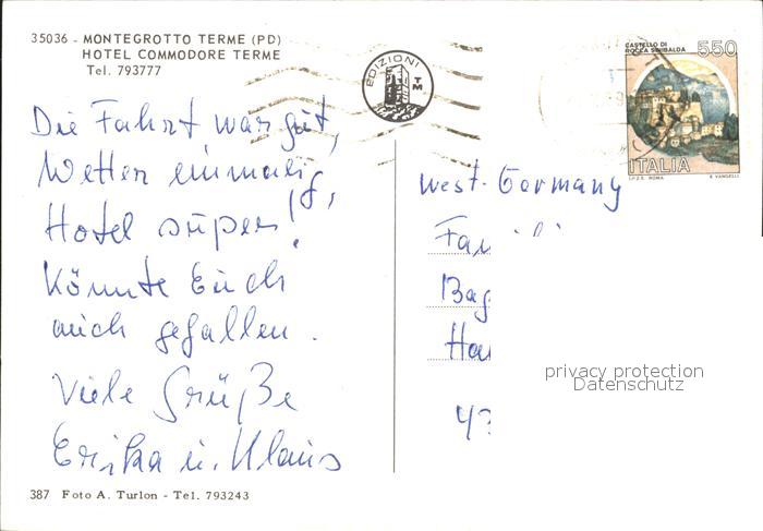 old postcard Montegrotto Terme Hotel Commodore Terme Swimming Pool postalisch gelaufen Erhaltung siehe scans