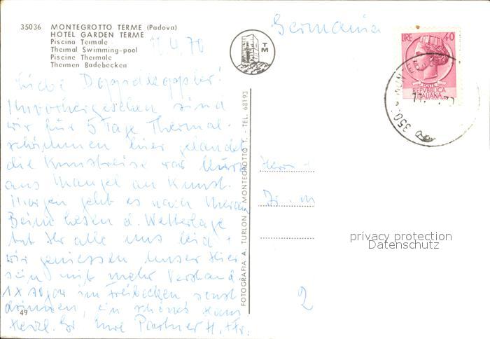 old postcard Montegrotto Terme Hotel Garden Eden Thermal Badebecken postalisch gelaufen Erhaltung siehe scans