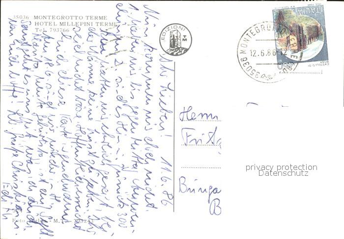 old postcard Montegrotto Terme Hotel Millepini postalisch gelaufen Erhaltung siehe scans