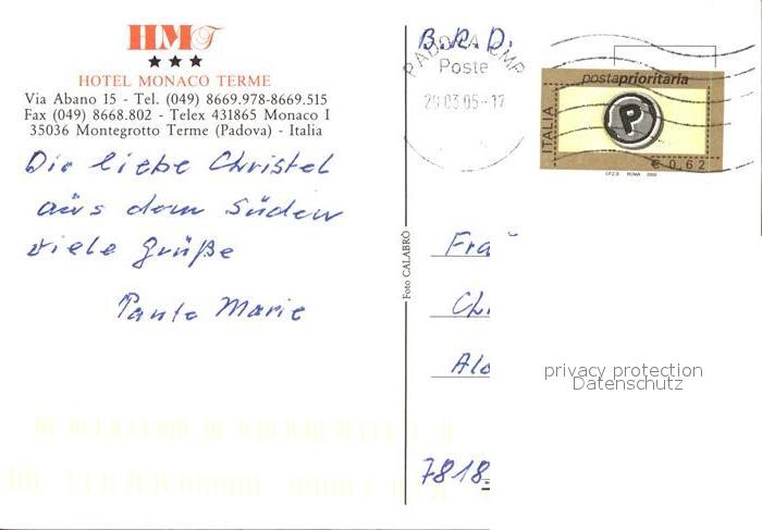old postcard Montegrotto Terme Hotel Monaco Terme postalisch gelaufen Erhaltung siehe scans
