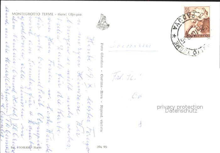old postcard Montegrotto Terme Hotel Oljmpia postalisch gelaufen Erhaltung siehe scans