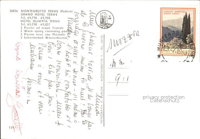 old postcard Montegrotto Terme Hotel Olympia Terme Schwimmbecken postalisch gelaufen Erhaltung siehe scans
