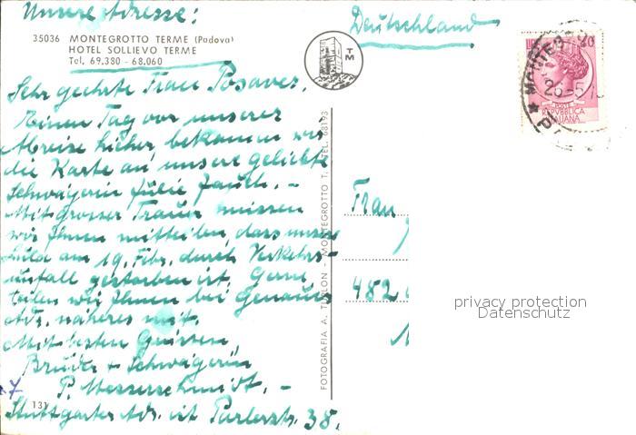 old postcard Montegrotto Terme Hotel Sollievo Terme postalisch gelaufen Erhaltung siehe scans