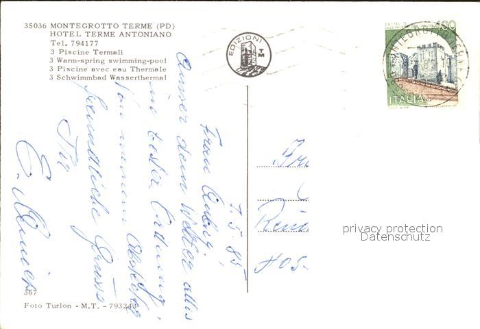 old postcard Montegrotto Terme Hotel Terme Antoniano postalisch gelaufen Erhaltung siehe scans