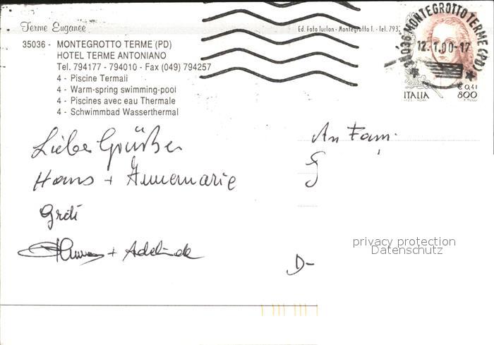 old postcard Montegrotto Terme Hotel Terme Antoniano postalisch gelaufen Erhaltung siehe scans