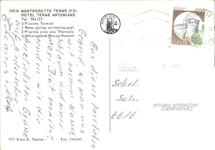 old postcard Montegrotto Terme Hotel Terme Antoniano Swimming Pool postalisch gelaufen Erhaltung siehe scans [FriedD77]