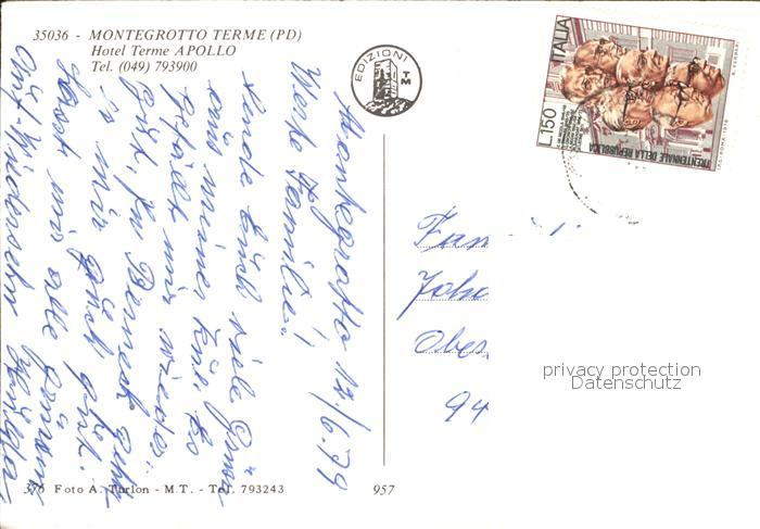 old postcard Montegrotto Terme Hotel Terme Apollo postalisch gelaufen Erhaltung siehe scans
