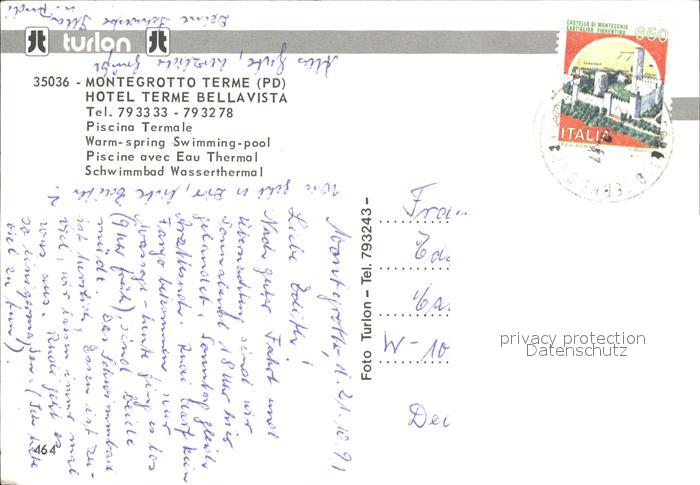 old postcard Montegrotto Terme Hotel Terme Bellavista postalisch gelaufen Erhaltung siehe scans