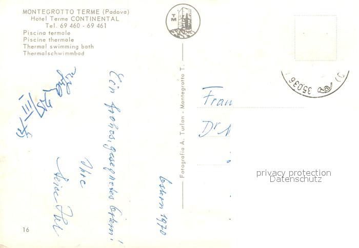 73711369 Montegrotto Terme Hotel Terme Continental Thermalschwimmbad postalisch gelaufen Erhaltung siehe scans [LiesaD40] old postcard Lies Katcode 11240