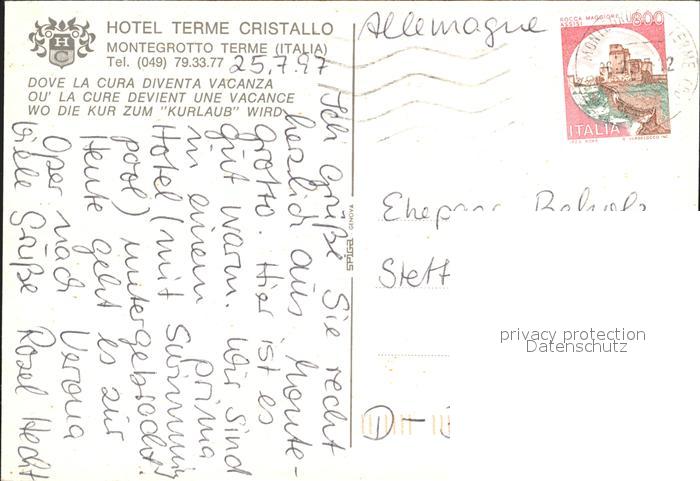 old postcard Montegrotto Terme Hotel Terme Cristallo postalisch gelaufen Erhaltung siehe scans