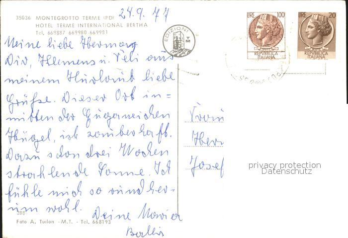 old postcard Montegrotto Terme Hotel Terme International Bertha Swimming Pool Tennis postalisch gelaufen Erhaltung siehe scans