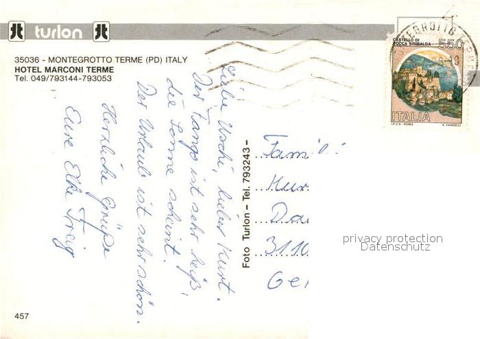 old postcard Montegrotto Terme Hotel Terme Marconi Swimmingpool Moorbad postalisch gelaufen Erhaltung siehe scans [WerneD78]