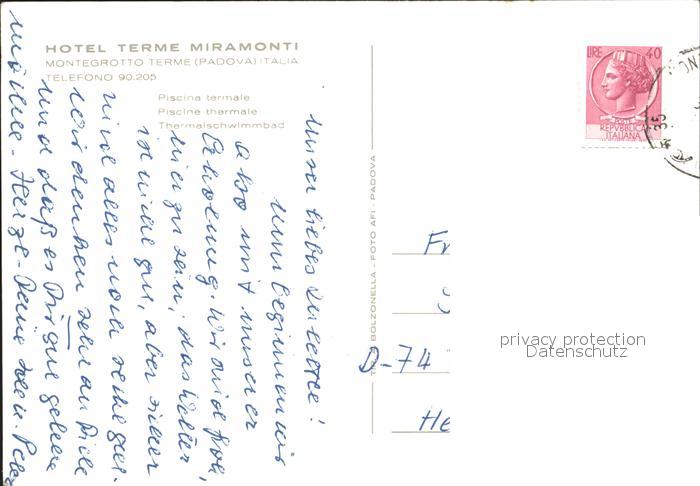 old postcard Montegrotto Terme Hotel Terme Miramonti postalisch gelaufen Erhaltung siehe scans