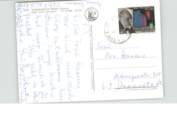 old postcard Montegrotto Terme Hotel Terme Neroniane postalisch gelaufen
