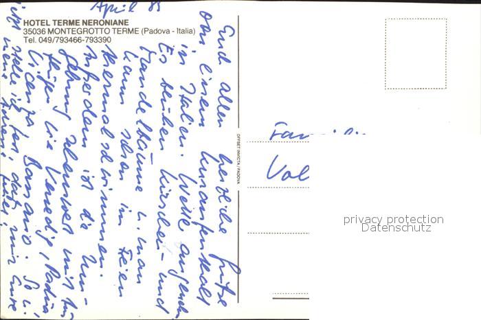 Montegrotto Terme Hotel Terme Neroniane Pool postalisch nicht gelaufen Erhaltung siehe scans