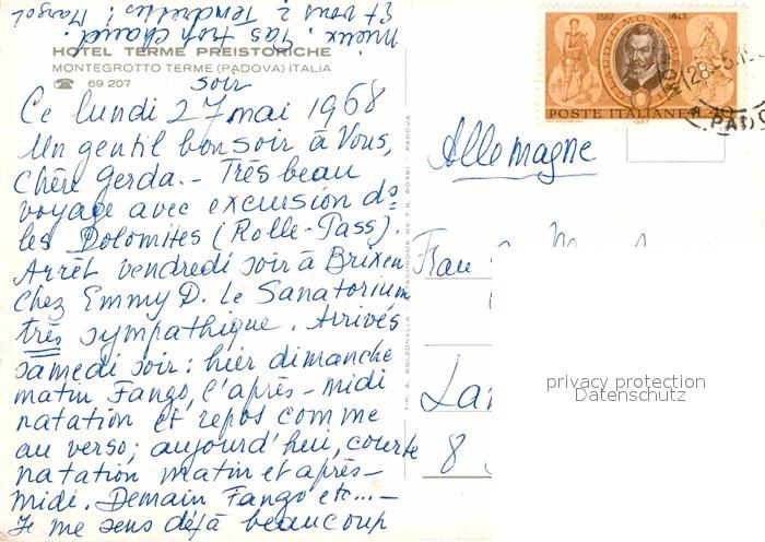 old postcard Montegrotto Terme Hotel Terme Preistoriche Swimming Pool postalisch gelaufen Erhaltung siehe scans [FriedD77]