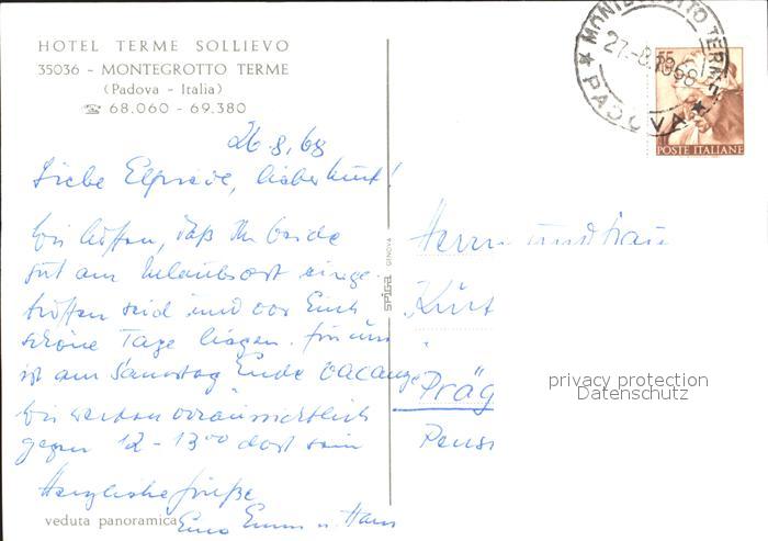 old postcard Montegrotto Terme Hotel Terme Sollievo postalisch gelaufen Erhaltung siehe scans