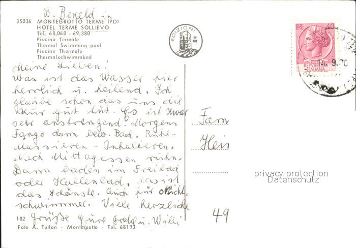 old postcard Montegrotto Terme Hotel Terme Sollievo Swimming Pool postalisch gelaufen