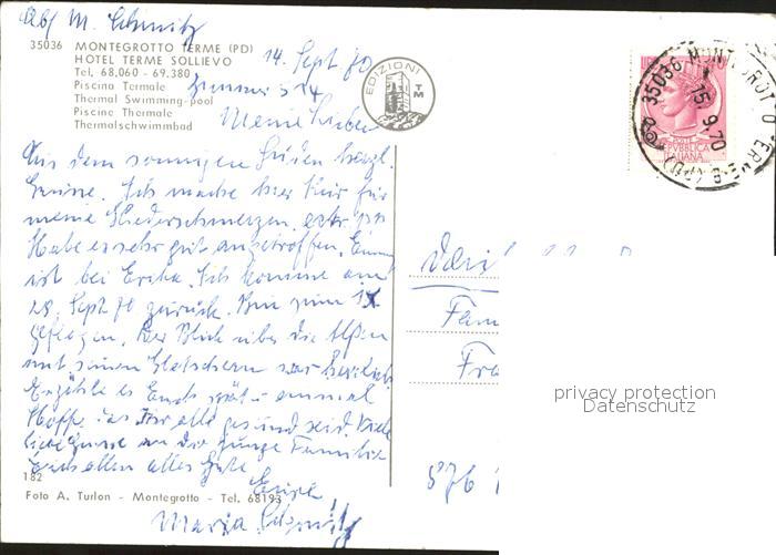 old postcard Montegrotto Terme Hotel Terme Sollievo Thermalbad postalisch gelaufen Erhaltung siehe scans