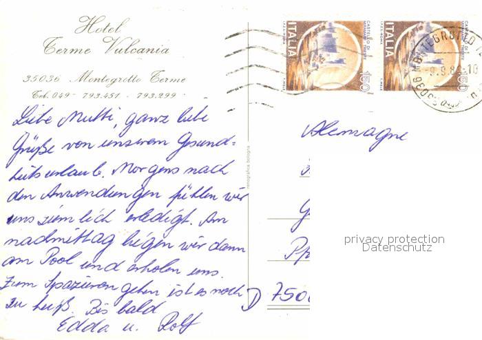 old postcard Montegrotto Terme Hotel Terme Vulcania postalisch gelaufen Erhaltung siehe scans [WerneD78]