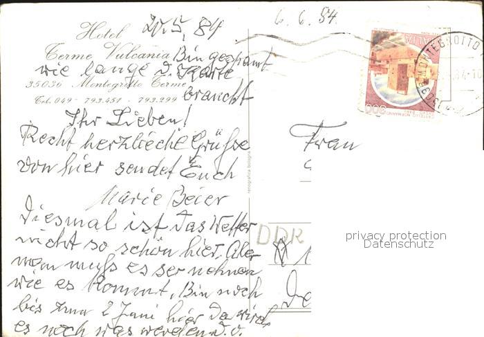 old postcard Montegrotto Terme Hotel Terme Vulcania postalisch gelaufen Erhaltung siehe scans
