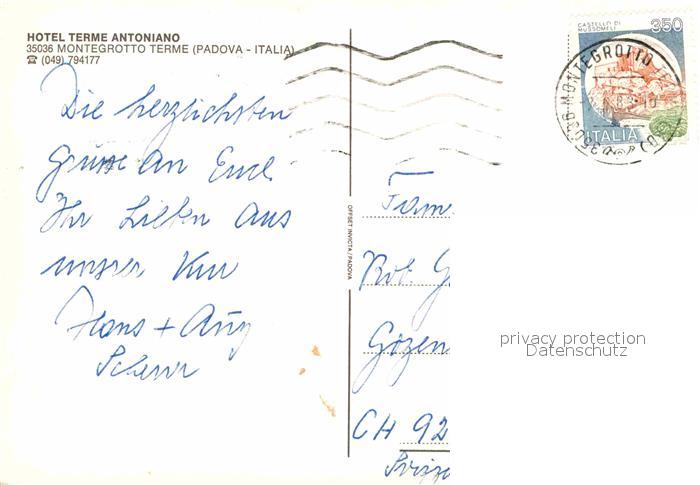 old postcard Montegrotto Terme Hotel Therme Antoniano postalisch gelaufen Erhaltung siehe scans [AndreD76]