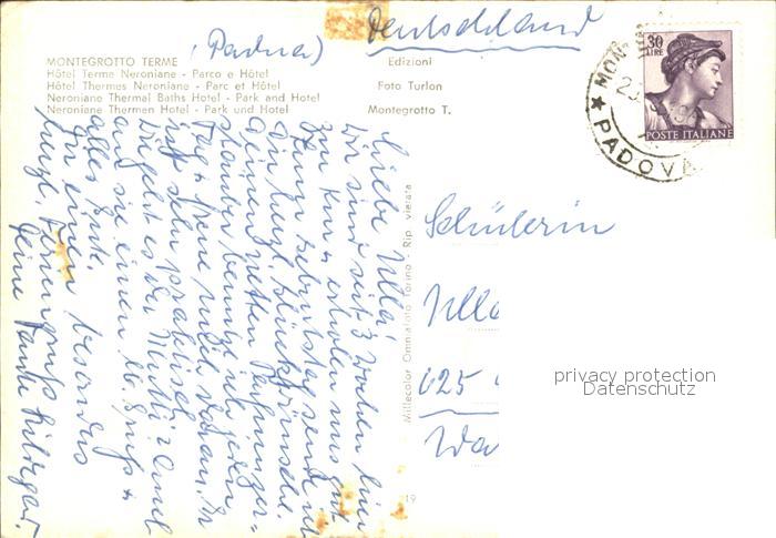 old postcard Montegrotto Terme Neroniane Thermen Hotel postalisch gelaufen Erhaltung siehe scans