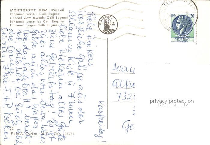 old postcard Montegrotto Terme Panorama verso i Colli Euganei postalisch gelaufen Erhaltung siehe scans