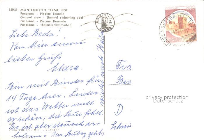old postcard Montegrotto Terme Piscina Termale postalisch gelaufen Erhaltung siehe scans