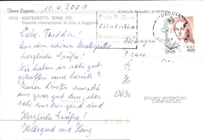 old postcard Montegrotto Terme Terme Euganee Stazione internazionale di Cura e Soggiorno postalisch gelaufen Erhaltung siehe scans