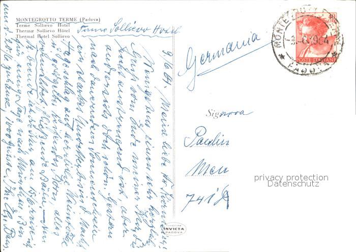 old postcard Montegrotto Terme Thermal Hotel Sollievo postalisch gelaufen Erhaltung siehe scans