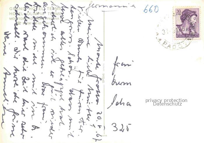 74095953 old postcard Montegrotto Terme Veneto IT Grand Hotel Terme postalisch gelaufen Erhaltung siehe scans [WerneD78] KatCode: 11240