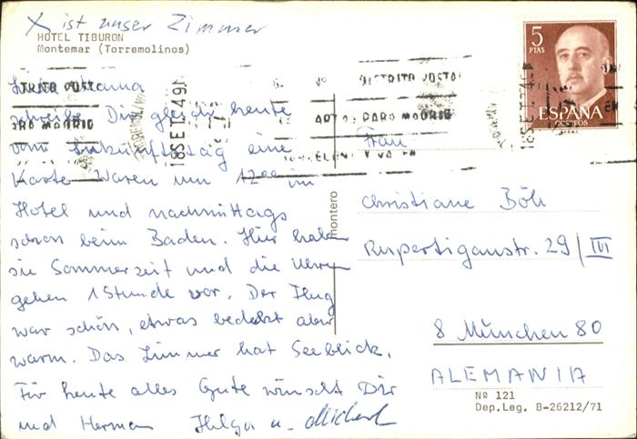old postcard Montemar Hotel Tiburon postalisch gelaufen