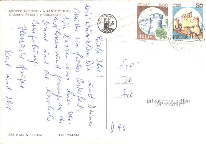 old postcard Monteortone Chiostro Pensile Campanile postalisch gelaufen Erhaltung siehe scans
