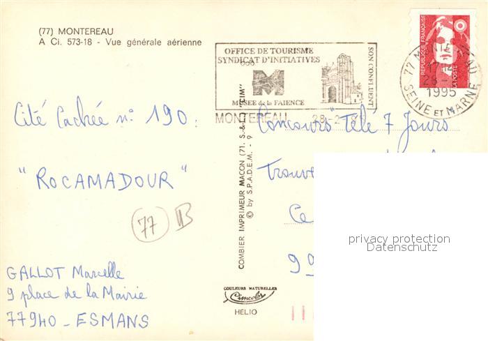 13161186 carte postale Montereau-Fault-Yonne Vue aérienne postalisch gelaufen Erhaltung siehe scans [FriedD77] KatCode: 11170077377305