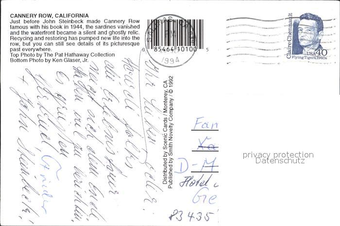 72073277 old postcard Monterey California Cannery Row Then and Now Canning Company postalisch gelaufen Erhaltung siehe scans KatCode: 14140050000000