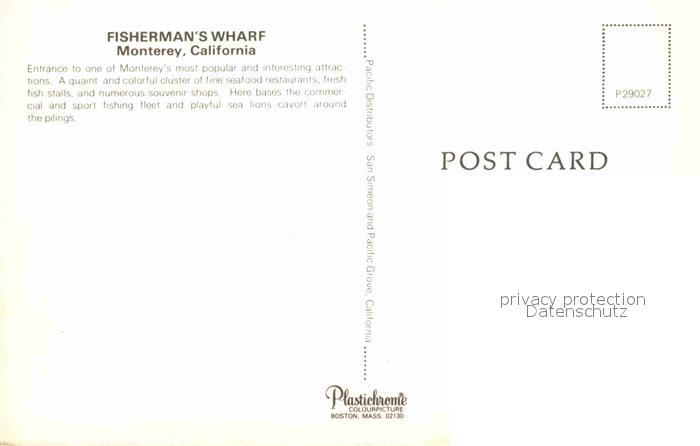 72763426 Monterey California Fishermans Wharf postalisch nicht gelaufen Erhaltung siehe scans [FriedD77] KatCode: 14140050000000