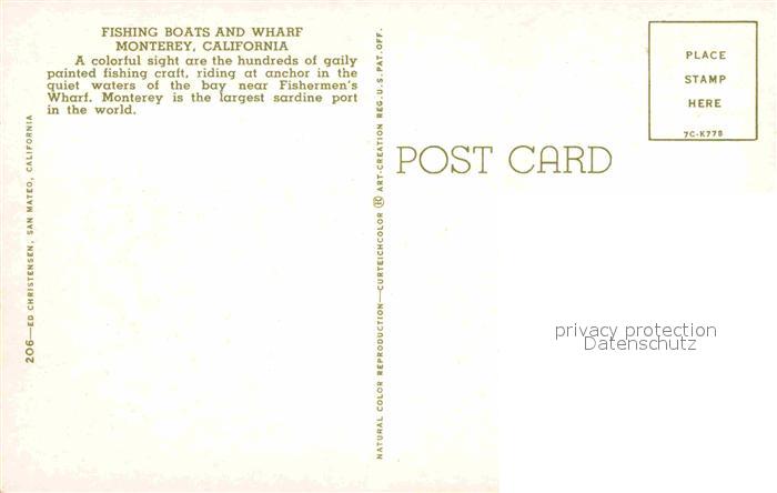 72744080 Monterey California Fishing Boats and Wharf postalisch nicht gelaufen Erhaltung siehe scans [LiesaD40] KatCode: 14140050000000