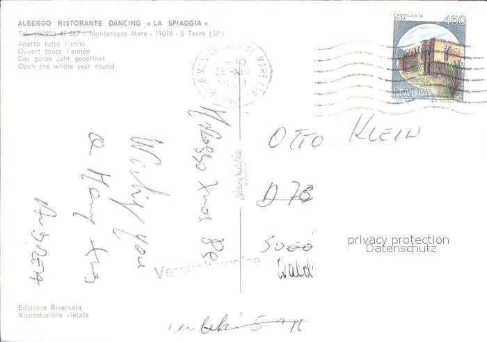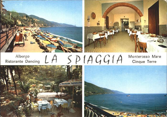 old postcard Monterosso al Mare Albergor Restaurant Dancing La Spiaggia postalisch gelaufen Erhaltung siehe scans