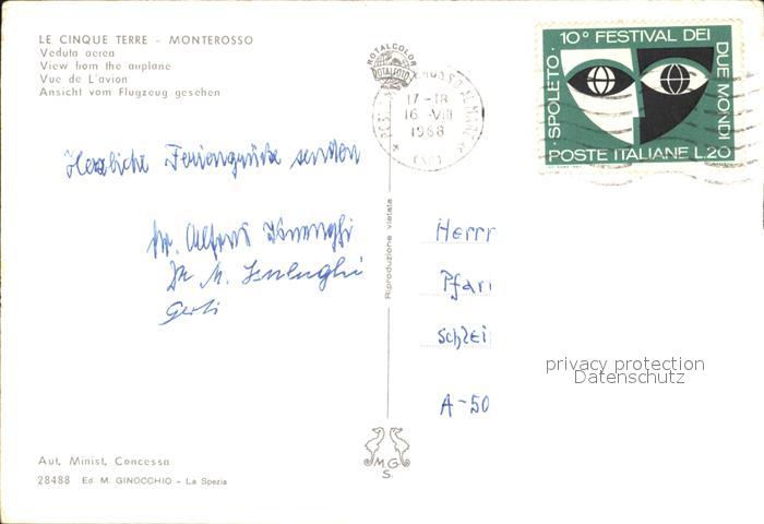old postcard Monterosso al Mare Fliegeraufnahme Le Cinque Terre postalisch gelaufen Erhaltung siehe scans