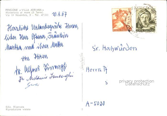 old postcard Monterosso al Mare Pension Villa Adriana postalisch gelaufen Erhaltung siehe scans