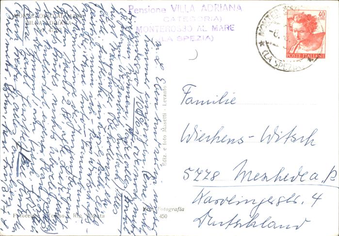 old postcard Monterosso al Mare Villa Adriana postalisch gelaufen Erhaltung siehe scans