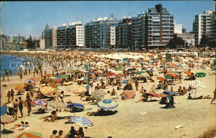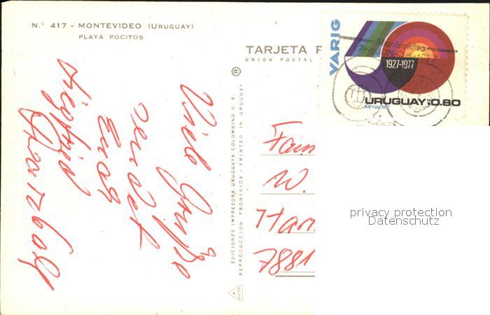 old postcard Montevideo Uruguay Playa Pocitos postalisch gelaufen Erhaltung siehe scans