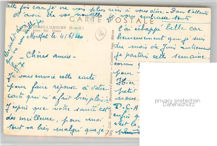 13488309 Montfort-l Amaury Eglise prise des Tours postalisch nicht gelaufen Erhaltung siehe scans [LiesaD40] KatCode: 11170078278420