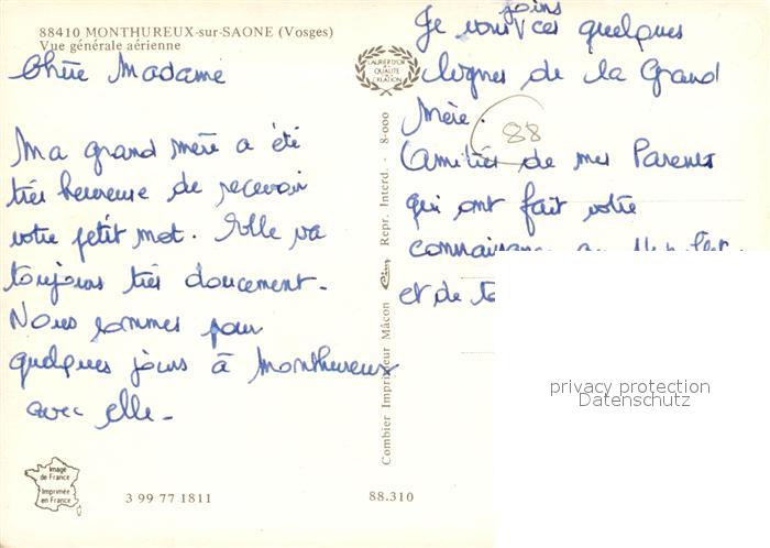 13109268 Monthureux-sur-Saone Fliegeraufnahme postalisch nicht gelaufen Erhaltung siehe scans [KathaD81] KatCode: 11170088188310